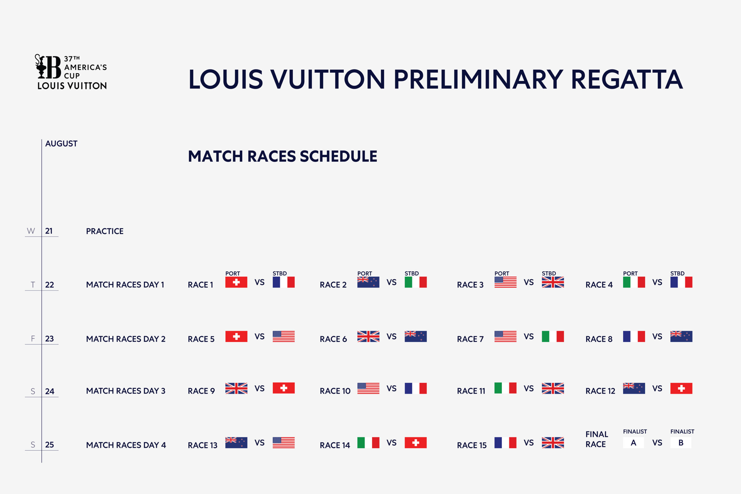 さて、22日より始まるプレリミナリー・レガッタのレースですが、参加する6チームで1対1の総当たり戦が行われ、上位2チームで最終決戦をするというものです。