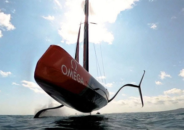 女子アメリカズカップやユースアメリカズカップ用のボート・AC40はオートパイロット機能が付いていて、一旦フォイリングすると、その姿勢を保つようにしてくれるそうです。